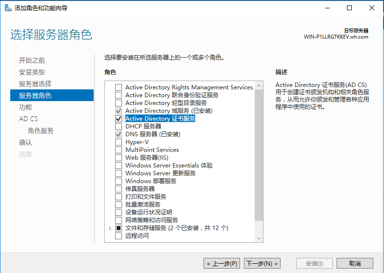 (1)打开服务器的角色和安装,勾选证书服务,然后点击下一步。