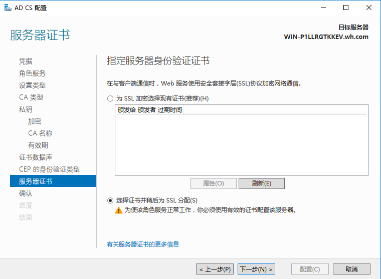 (9)在服务器证书页面选择第二个选项勾选稍后为ssl分配证书,然后点击下一步。
