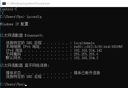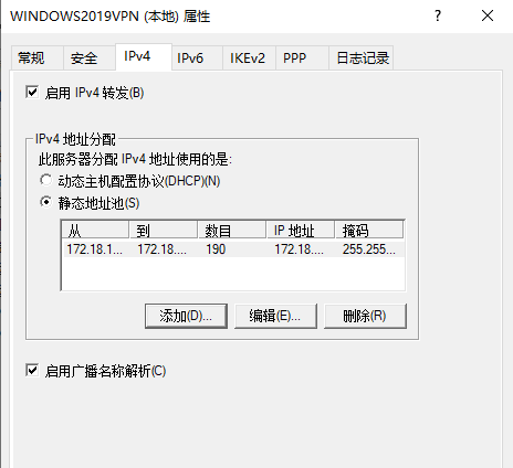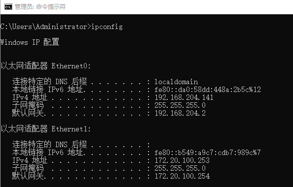 | 边界vpn服务器(Windows Server 2019) | 172.20.100.253/24 DNS:172.20.100.254 | 192.168.204.141/24 DNS:172.20.100.254 | 192.168.204.2 |