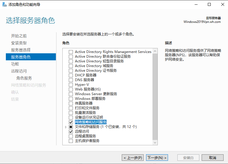 (1)打开服务器的添加角色选择路由和远程访问以及网络策略服务。