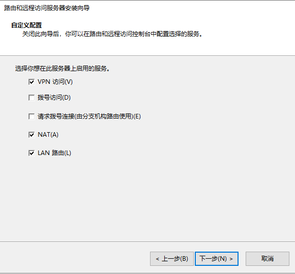 (4)勾选vpn访问,nat访问,lan路由选项,然后点击下一步。