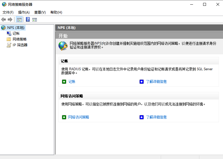 (7)右击远程访问日记记录和策略,点击启动nps,进入到网络策略服务器配置页面。