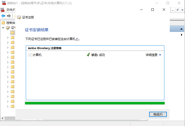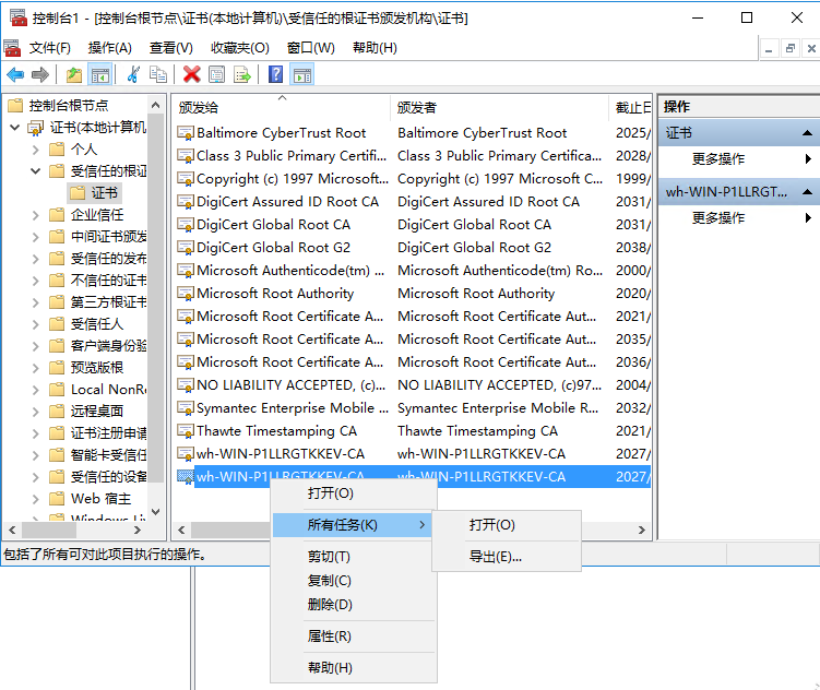 (6)导出完成之后将该证书安装到Windows客户机上。
