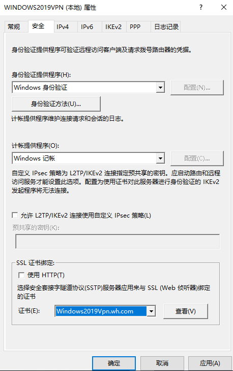 (4)完成之后打开路由和远程访问策略,在ssl证书绑定中选择刚才注册的证书。,然后点击确定。