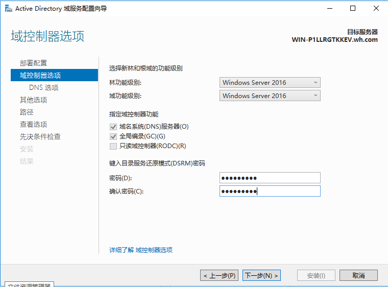 在公司内网的Windows Server2016上首先需要进行域控的安全和部署,配置的过程如下。