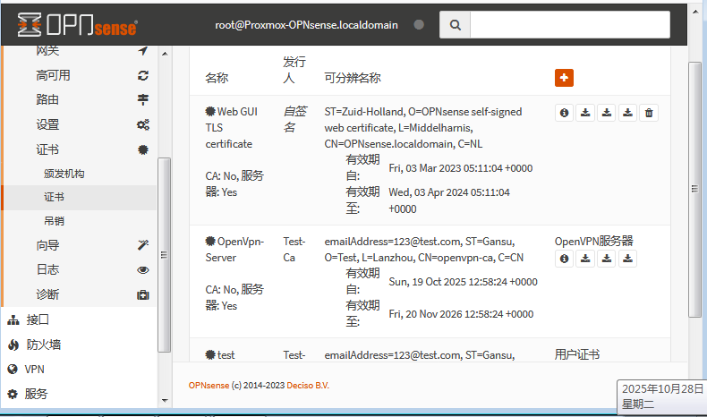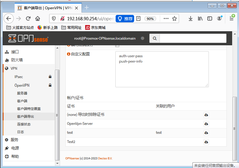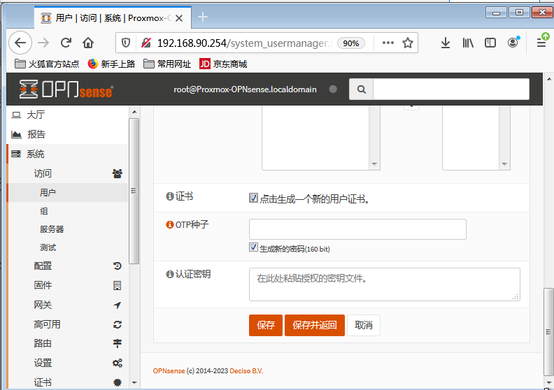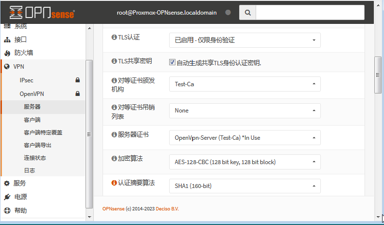 - 证书与密钥管理:使用OpnSense自带的 CA 与证书系统,决定认证方式(证书+密码/动态验证)。