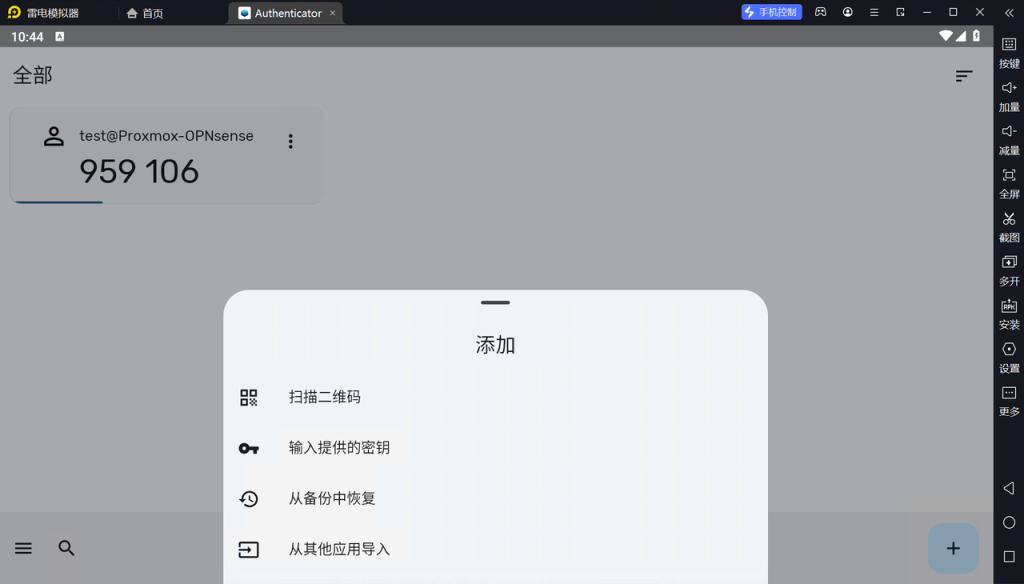 6.然后打开打开该应用,扫描刚才opt的二维码,实现动态验证码的接入,此时VPN基本配置完成。