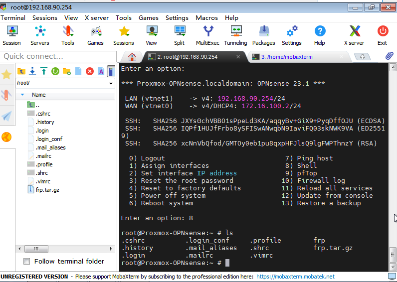 2.此时使用ssh登录到防火墙上去,将FRP上传到该防火墙中。