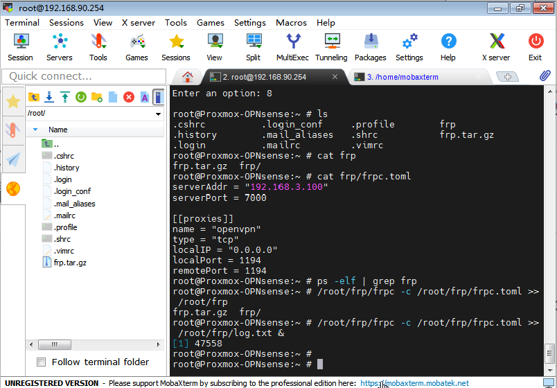 /root/frp/frpc -c /root/frp/frpc.toml >> /root/frp/log.txt &Code language: JavaScript (javascript)