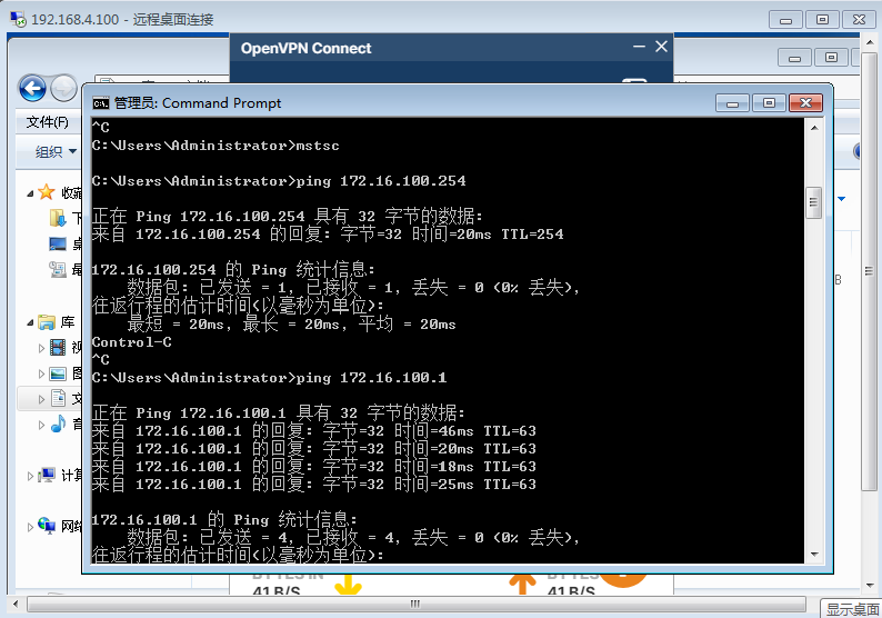 5.使用VPN的主机进行访问内网网段进行测试,经过策略发现可以正常访问。