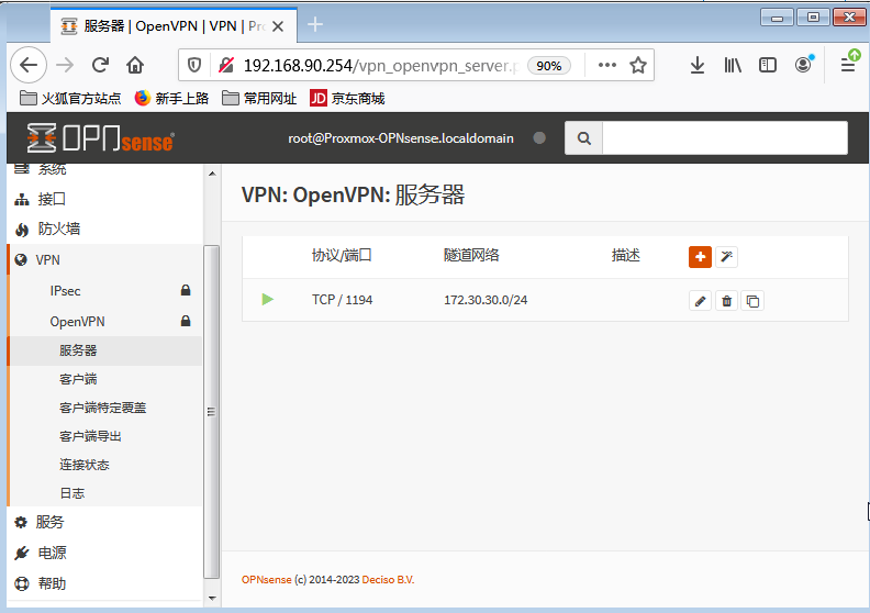 | 192.168.90.0/24 | 虚拟机(服务段) | 192.168.90.254 | 内网的所有虚拟机服务段,由OpnSense提供服务 |