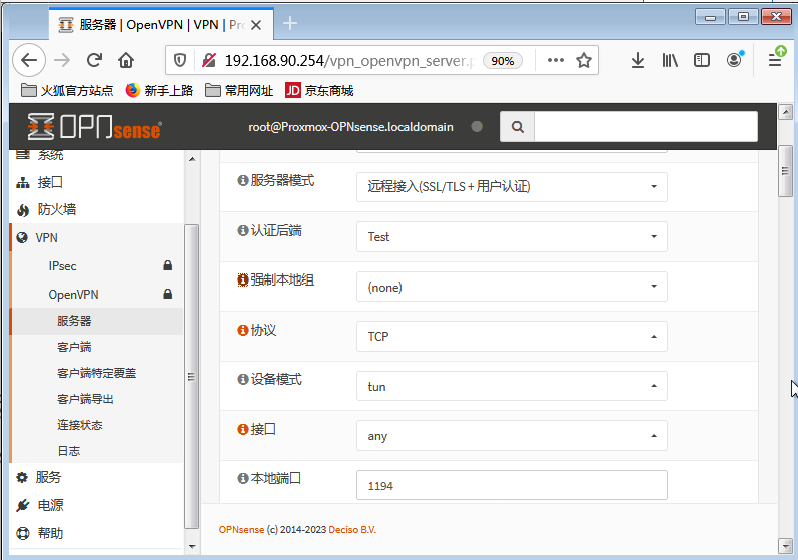 - OpenVPN 服务:运行在OpnSense上,提供隧道加密、客户端认证与流量转发。